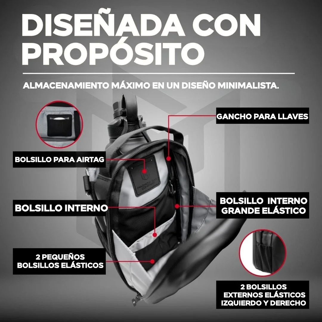 ✅Gracias a las variadas bolsas, lleva tu botella, celular y cargador en un mismo lugar.