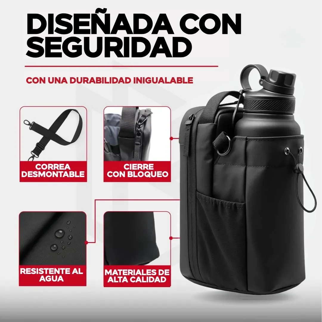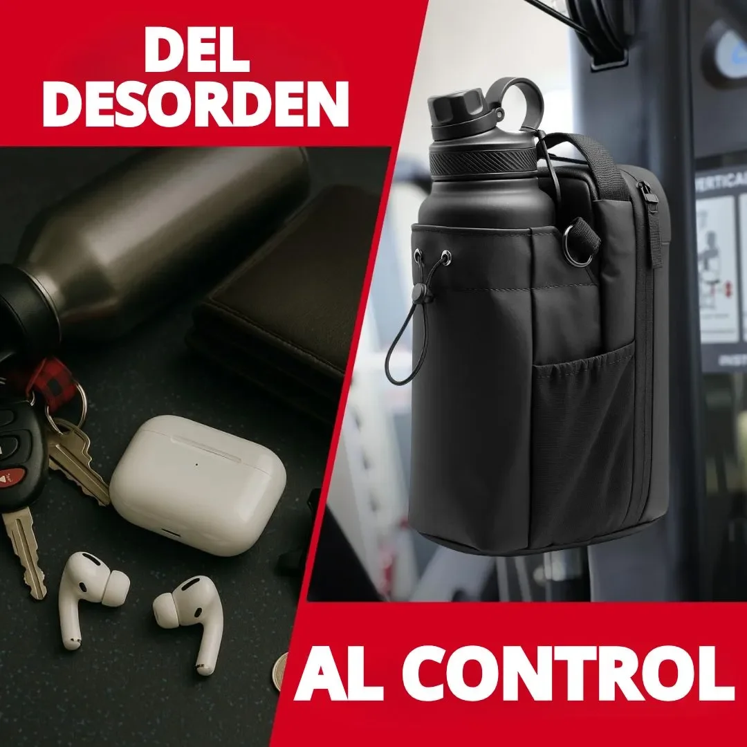 🎒 GYMSPOT® - Mochila Organizadora Portátil para Botella y Accesorios, con ella podrás llevar tu botella, celular, audífonos y más en un solo lugar.